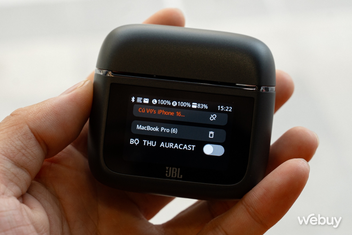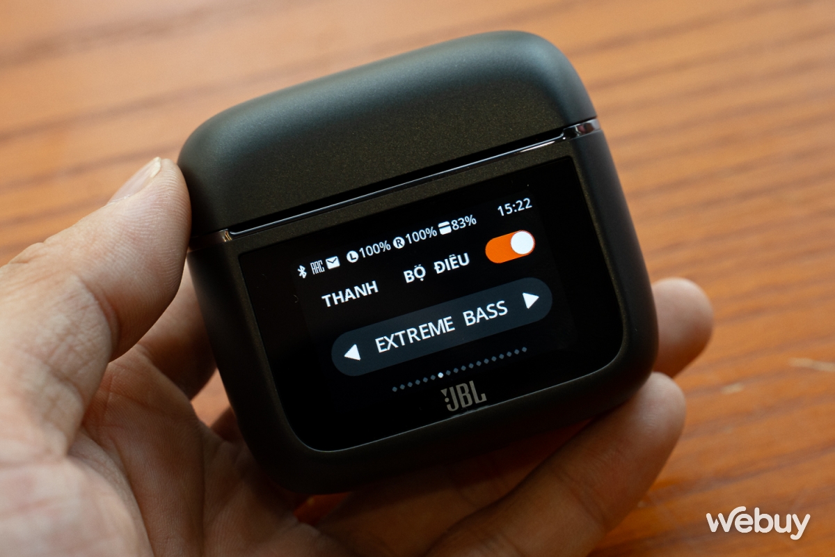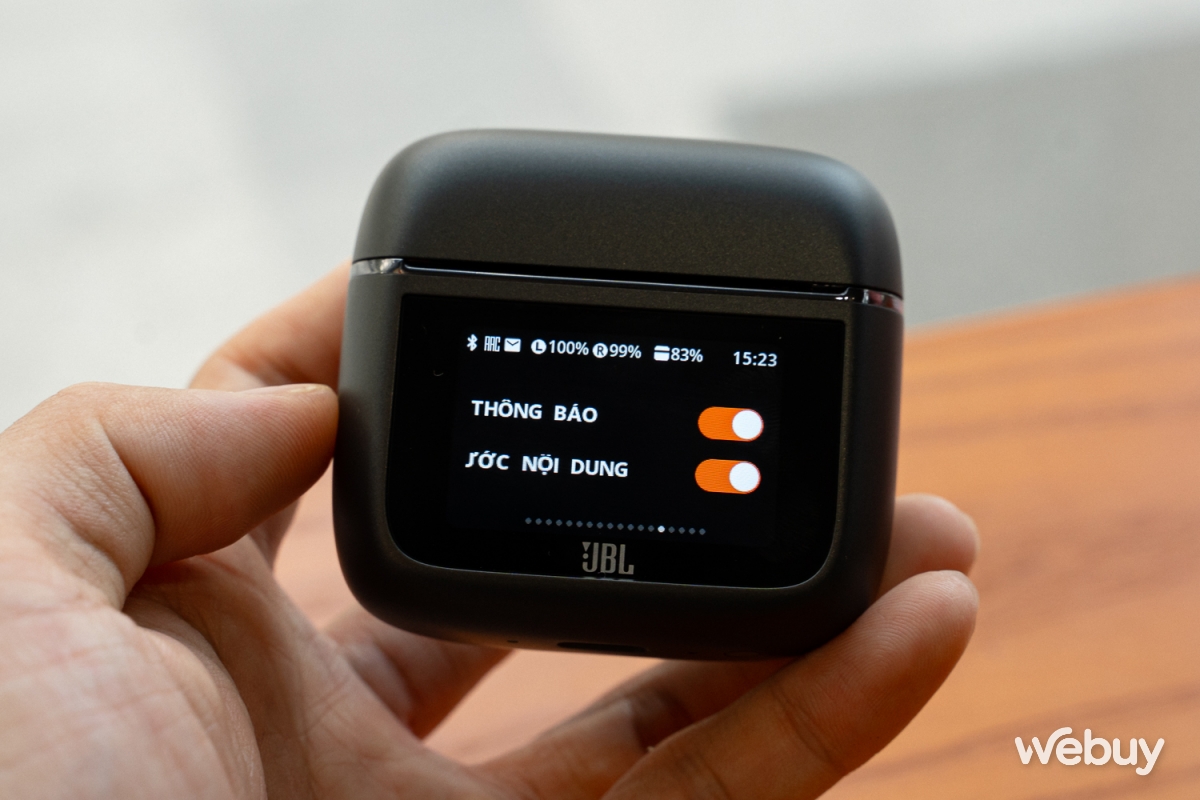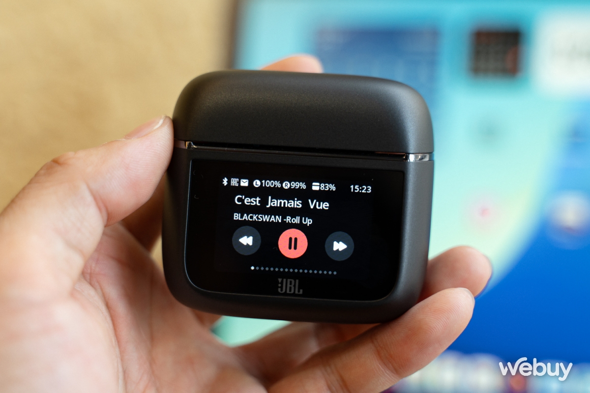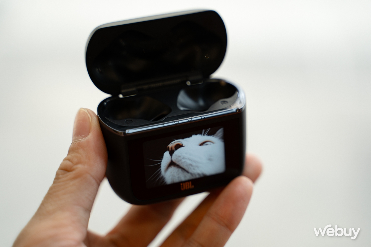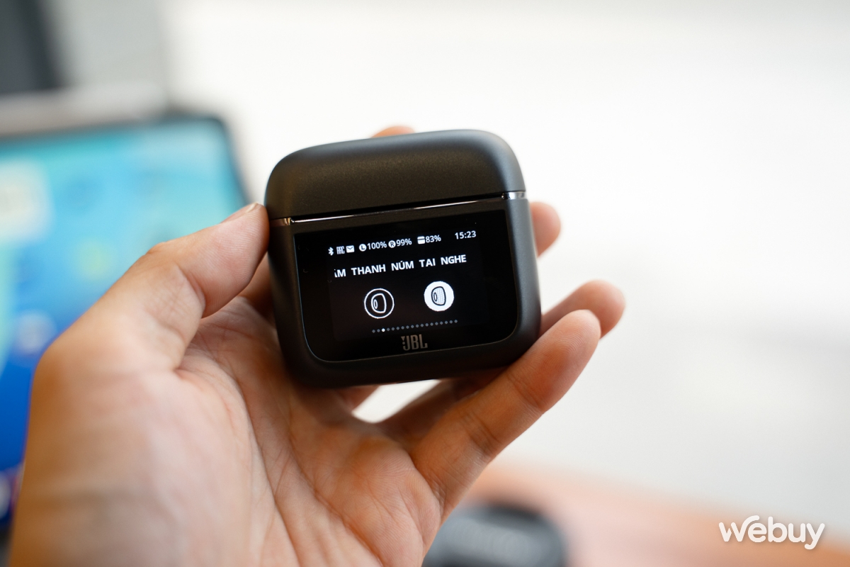 The charging box is also a notable highlight: The touch screen is larger than the previous generation but the overall weight is lighter. In particular, JBL also integrates a small speaker on the charging box, making it easy to find the headset if you accidentally leave it somewhere. Note that the speaker volume is not very loud, so if it falls in a public, noisy place, it is still quite difficult to find it.