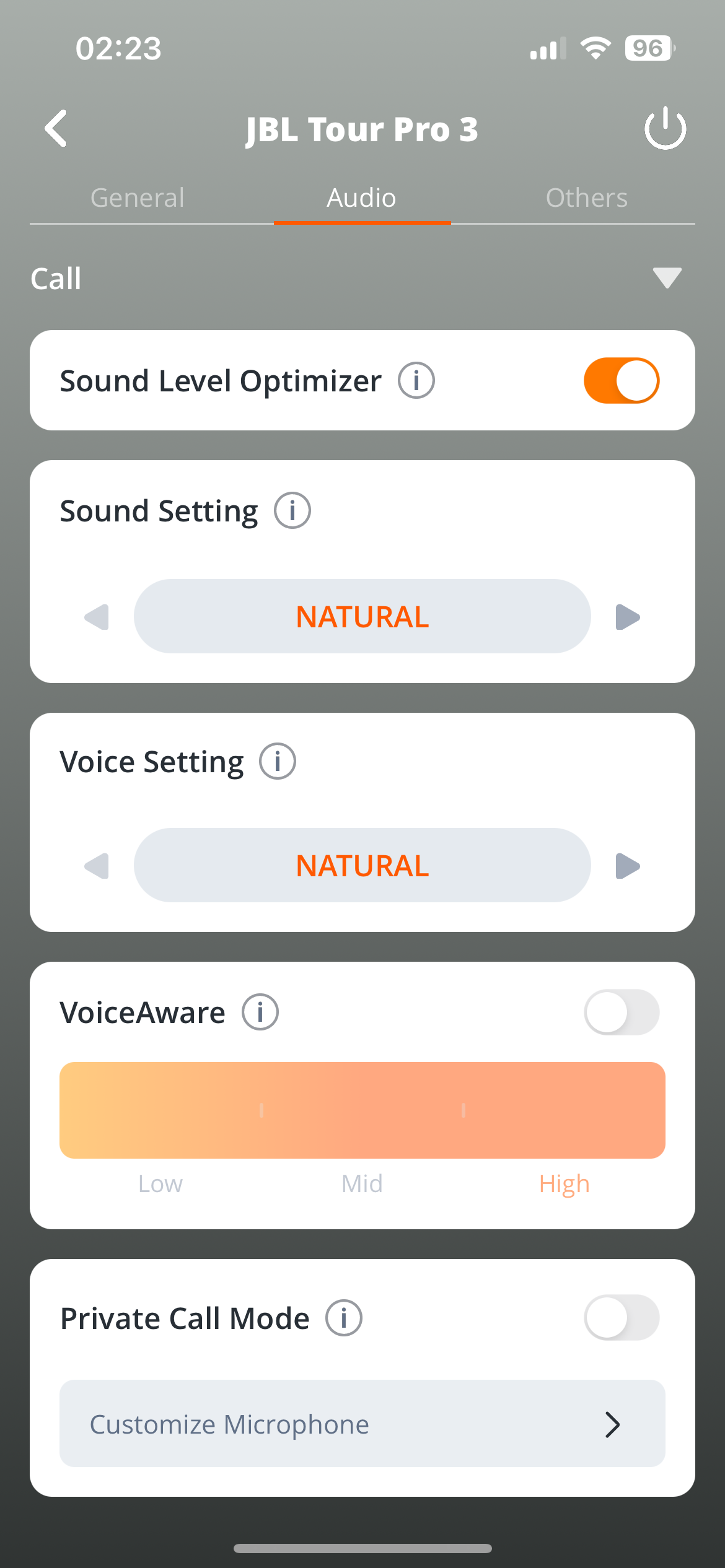 The JBL Tour Pro 3's noise cancelling capabilities are truly impressive. When using the foam ear tips combined with the Auto Compensate feature (which automatically turns on when you open the box), the headphones can almost completely eliminate low-frequency noise such as the sound emitted from vehicles on the road, the sound of fans or air conditioners. Even mid-frequency sounds such as human voices are significantly reduced without causing a feeling of stuffiness or discomfort.